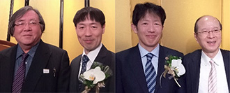 (右)から武田院長。ネオアンチゲン等で発表した国立医薬基盤研/副センター長清谷一馬氏。武曉セイ氏。趙鵬氏。