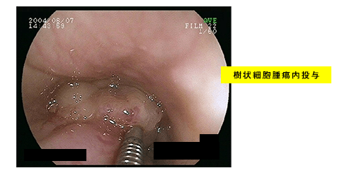 樹状細胞を内視鏡下に局注 → 腫瘤消失して嚥下可能となる。